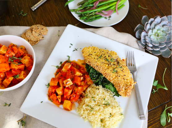 Red Pepper Jus, Pickled Onion, Carrot Puree